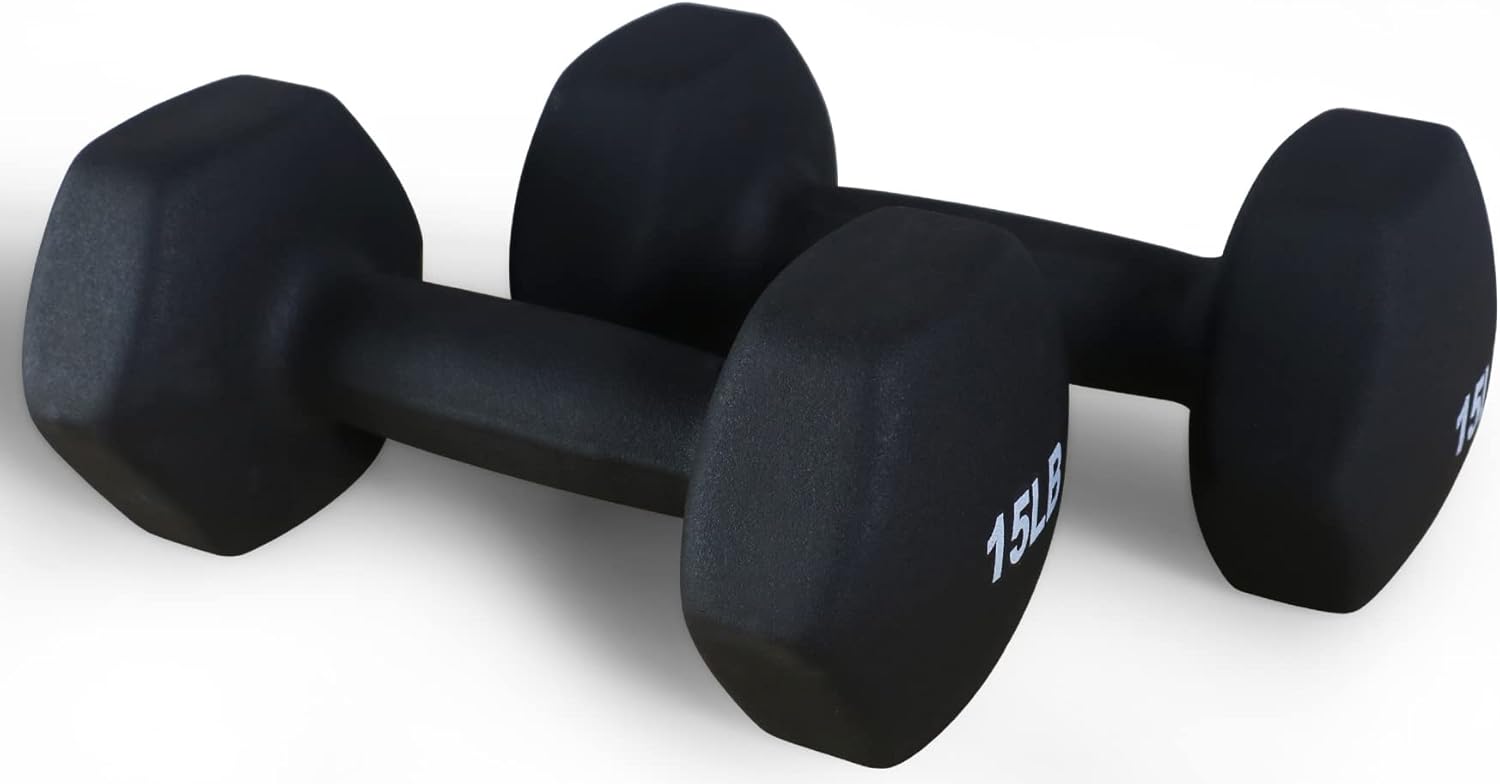 - Hexagon shaped dumbbell heads are designed to prevent rolling and provide easier storage